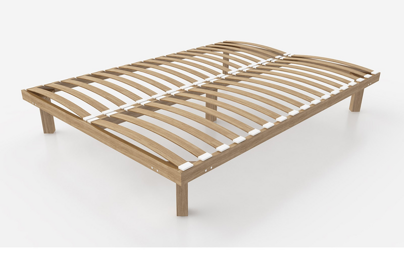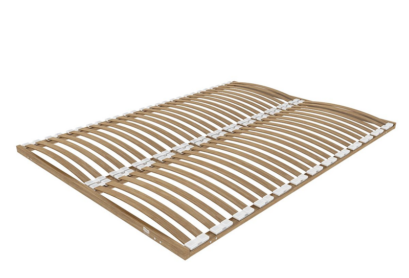 ● Ламельное – упругие широкие или узкие рейки чаще всего изготовлены из березы, благодаря гибкости материала такое основание равномерно распределяет нагрузку по матрасу и улучшает его ортопедические свойства. Ламели крепятся к металлическому или деревянному основанию с помощью латодержателей из пластика или каучука, также рейки могут входить концами в пазы рамы.